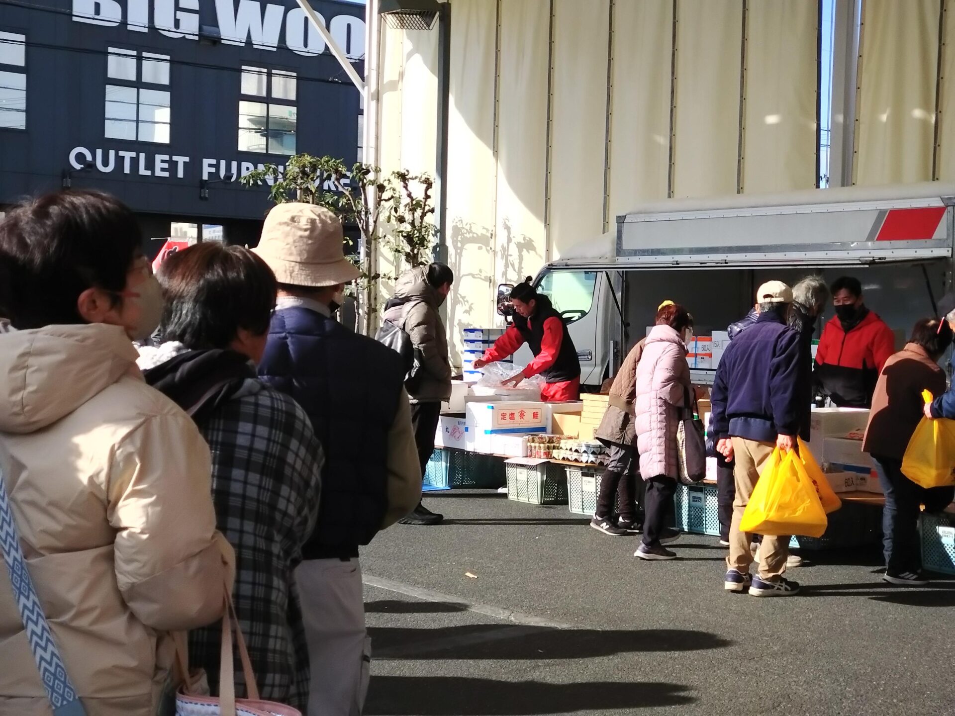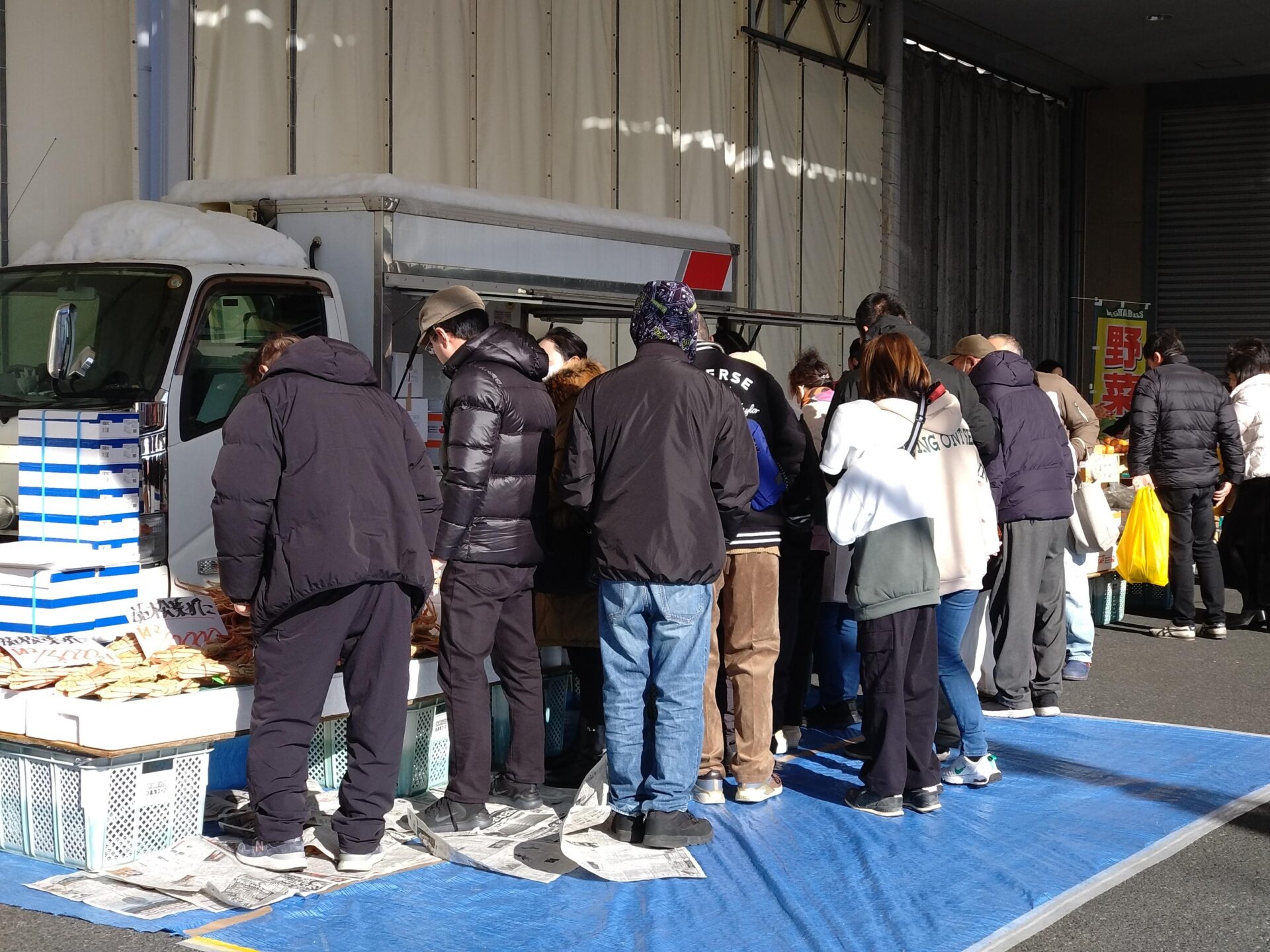 売切れないかしら・・と心配の表情がチラホラ。雪も時折チラホラ。