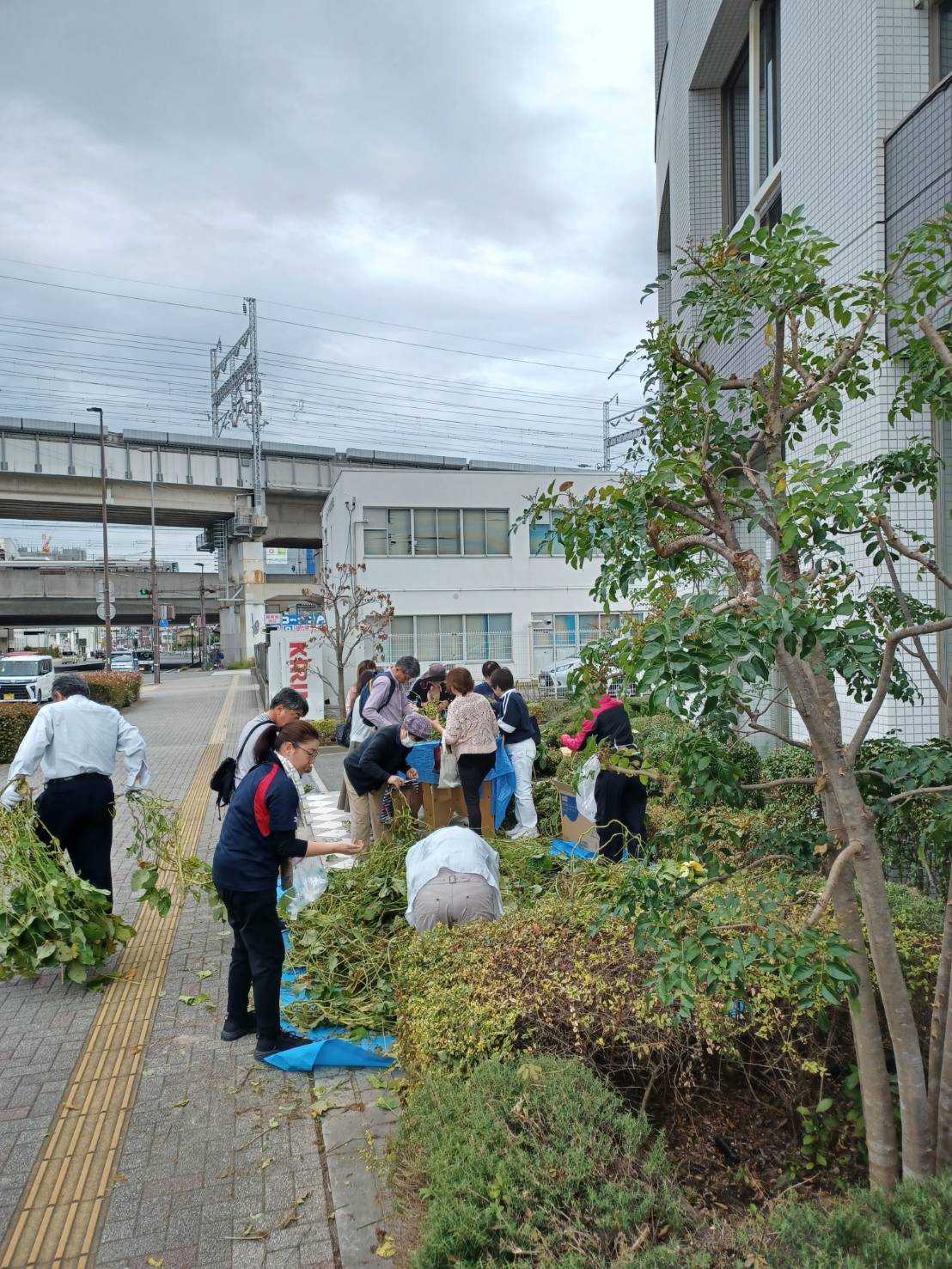 あっ、これは! ちぎり終わった枝を片付けている、わが社の社長でした・・・すみません。